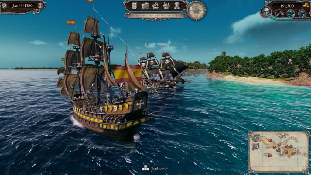 成为海盗不是你的错,而是你的责任!采取行动,让西班牙、荷兰、法国和英国的殖民地摆脱被财宝淹没的重担。但要小心警惕!除非你确信自己是这片海域中的巨头,否则不宜过早、过远地驶离可靠的老家港口。