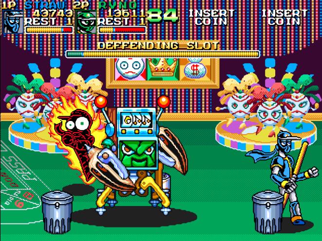 《忍者棒球小子(Ninja Baseball Batman)》是一款经典的街机游戏,游戏中可以选择红绿黄蓝4名忍者棒球手,分别擅长平衡、速度、力量以及长距攻击,很多动作都来自于棒球比赛中的实际技巧。