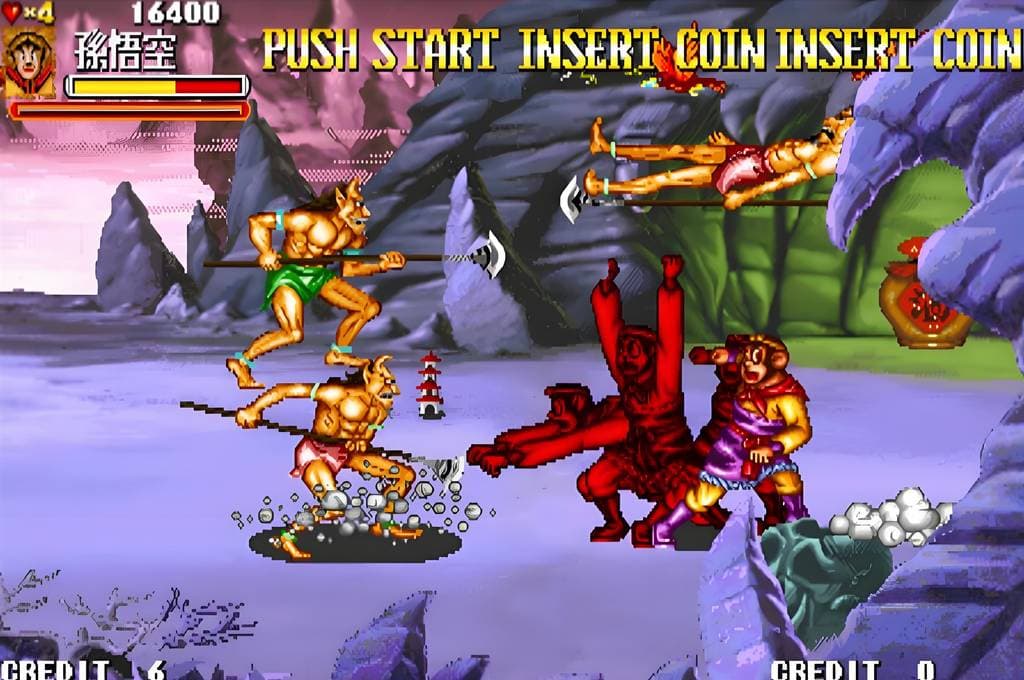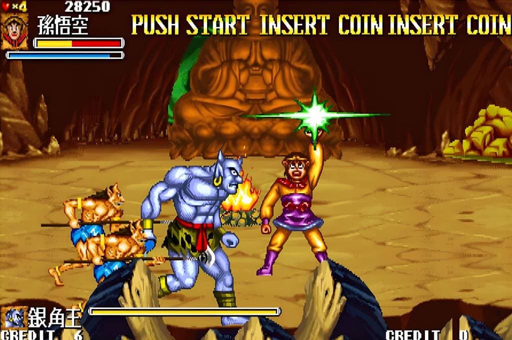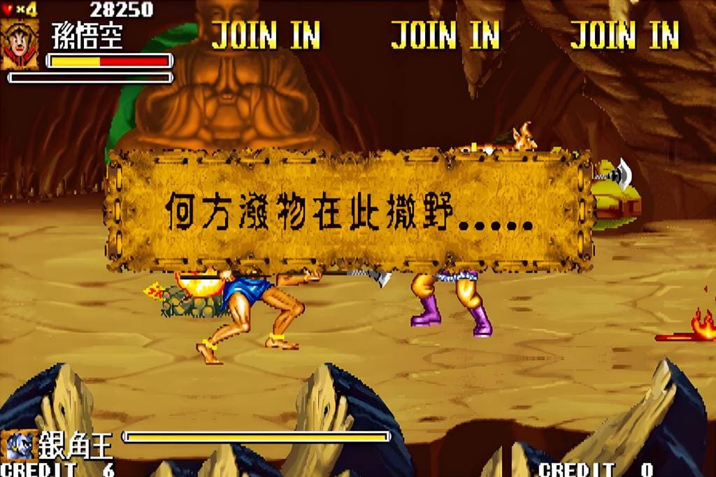 《西游记释厄传(Oriental Legend)》是一款经典的街机游戏。游戏以中国传统名著《西游记》为蓝本,玩家可选择唐僧师徒四人及龙马等角色。每个角色都有独特的技能和招式,战斗场面精彩。游戏中关卡设计巧妙,玩家需闯过重重难关,打败各种妖魔鬼怪,如白骨精、牛魔王等。